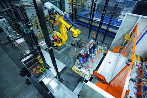 图1:3D传感器同时监测多个位置。图2:白车身区域的焊接系统。
