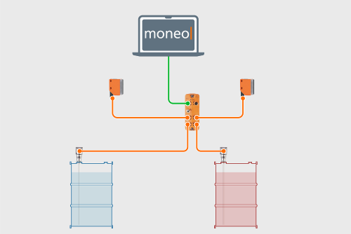 With the IIoT platform moneo, ifm provides a sophisticated level monitoring solution with automated replenishment control. In moneo, the process values are evaluated and analysed, providing information about the current level and enabling demand-based replacement of the drums. As an add-on, moneo LifetimeEstimator, an AI-supported software solution, enables prediction of the remaining lifetime of each drum based on its level.
