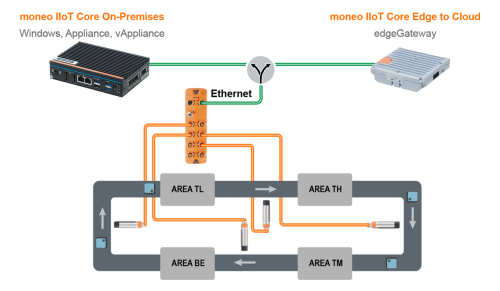Each RFID chip contains a unique number that enables precise tracking and monitoring of the current position. The IO-Link master transmits the collected data via moneo either to your ERP system or to the cloud for further analysis.