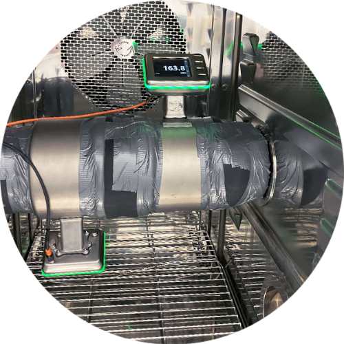 在冷凝测试期间,冷介质将通过管道系统和传感器而环境温度保持温暖。通过这种方式,SM Foodmag将暴露在高湿度并由此产生的冷凝环境中长达数周。此外,还使用温度为80 °C的清洗溶液以100 bar的压力从不同角度清洗传感器。湿气不得进入传感器。